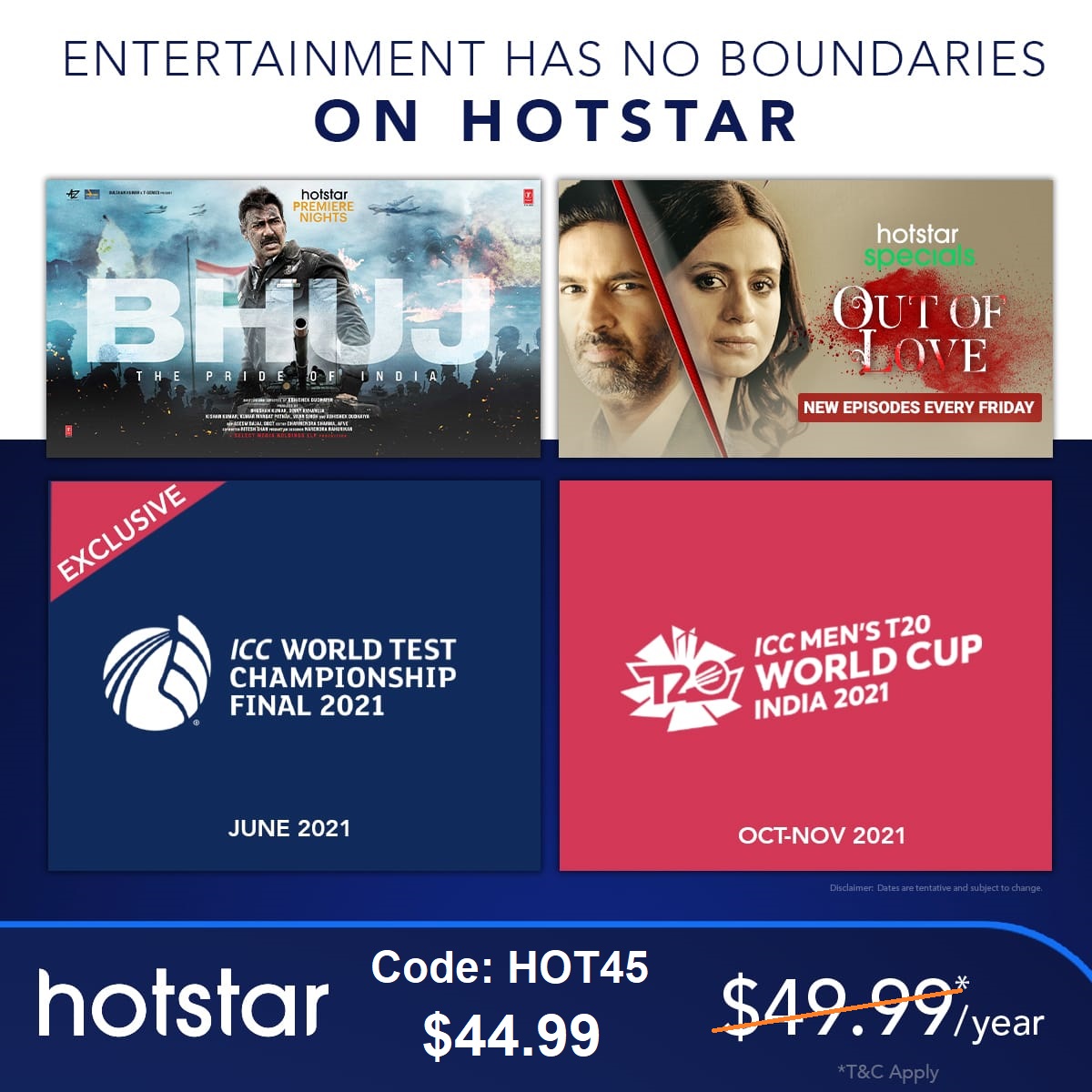 Hotstar USA Promo Code & Subscription Deals- FUN30 (Free Amazon Gift ... Click here to apply the promo code on Hotstar directly. Use promo code FUN30 while signing up for Hotstar USA Annual and Sports Package - $5 immediate discount + $100 Hotel Savings Card to your email within 4 days. Also, win a $15 amazon gift card and Edureka discount coupon for purchasing from one of the best Hotstar subscription deals. ESPN Plus Subscription at $6.99, You can now get Hotstar on Disney Bundle Subscribe Now. Bundle ESPN Plus w/ Disney+ & Hulu to save 30%: For just $13.99 per month, you can bundle ESPN Plus with Disney Plus and Hulu, a total of $5.98/mo or 30% compared to the regular price for each service. Stream live sports, watch endlessly. Subscribe Now. Get Hotstar Gift Vouchers & Gift Cards | Redeem Payback Points - GYFTR Gift Vouchers can only be used at " " and the Disney+ Hotstar application. Gift Vouchers are Valid for 6 months Only 1 Gift Voucher CAN be used in one transaction. Existing VIP subscribers have to pay the full amount while switching to premium. Customer needs to enter a Hyphen after the first 4 characters when entering the code. Hotstar Promo Code Upgrade (Get a 25% Discount with ... - Helpingdesi Hotstar Subscription Process #2 (Complete Steps): Visit Hotstar US official site and click on "Start Subscription." Complete your registration process by adding a name, Email I.D., and password. Also, you can sign up on Facebook. Next, you will be routed to the Payment Details Page where the subscription price will be $49.99 but don't worry!
