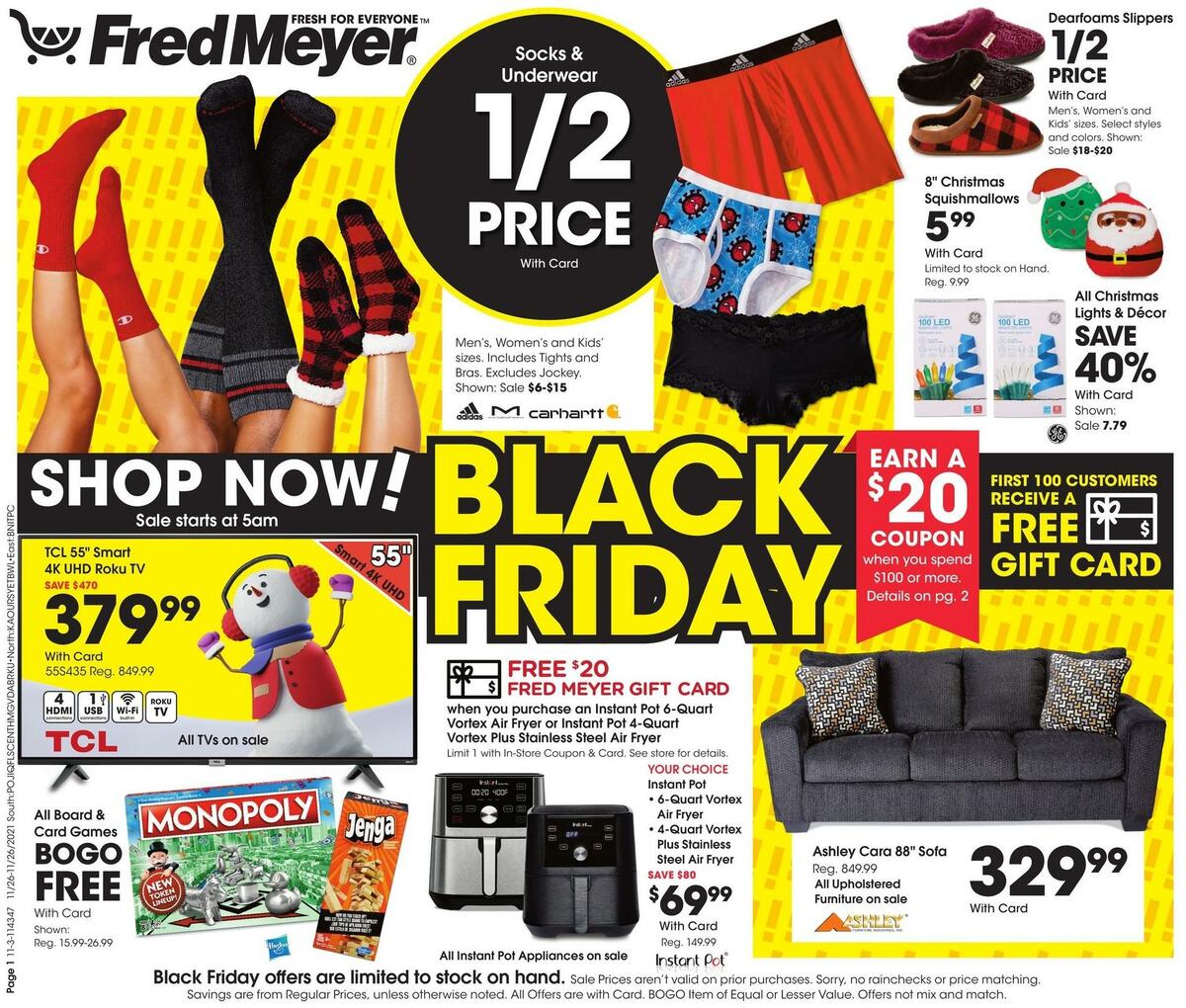 FREE Fred Meyer Gift Card for First 100 Customers on Black Friday ... It's Black Friday, and Fred Meyer is offering a Free Gift Card today to the first 100 customers per store! You can also score a $20-off coupon when you spend $100 or more on eligible items, and a free $20 gift card when you purchase an Instant Pot 6-Quart Vortex Air Fryer or an Instant Pot 4-Quart Vortex Plus Stainless Steel Air Fryer.