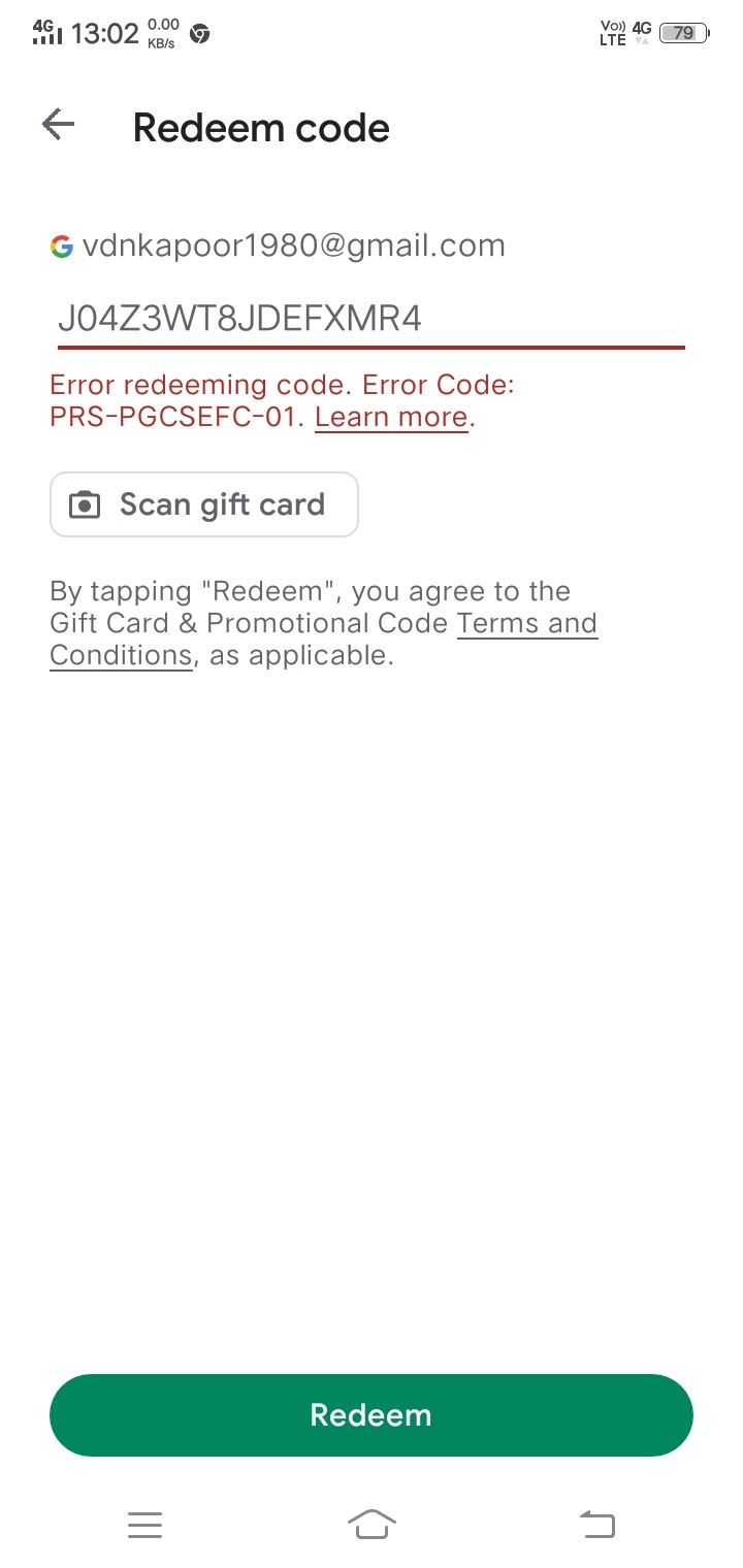 Fix problems with Google Play gift cards: Errors and Recommended ... To use a Google Play gift card or promotional code, the country of your Google Account must match the country where the product is offered. Below you can find an overview of the most common error messages and the corresponding solution. If you're still having any issues redeeming a card, please fill up this Google Play Help form. Thank you.