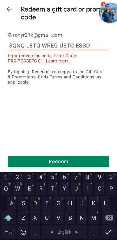 Google play giftcard redeem problems : r/googleplay - reddit To use a gift card or promotional code, the country of your Google Play Account must match the country where the gift card or promotional code is offered. If you get a message that says Google Play gift cards aren't valid in your country/region, learn how to change your Google Play country. -2 Reply Vincyx • 1 yr. ago