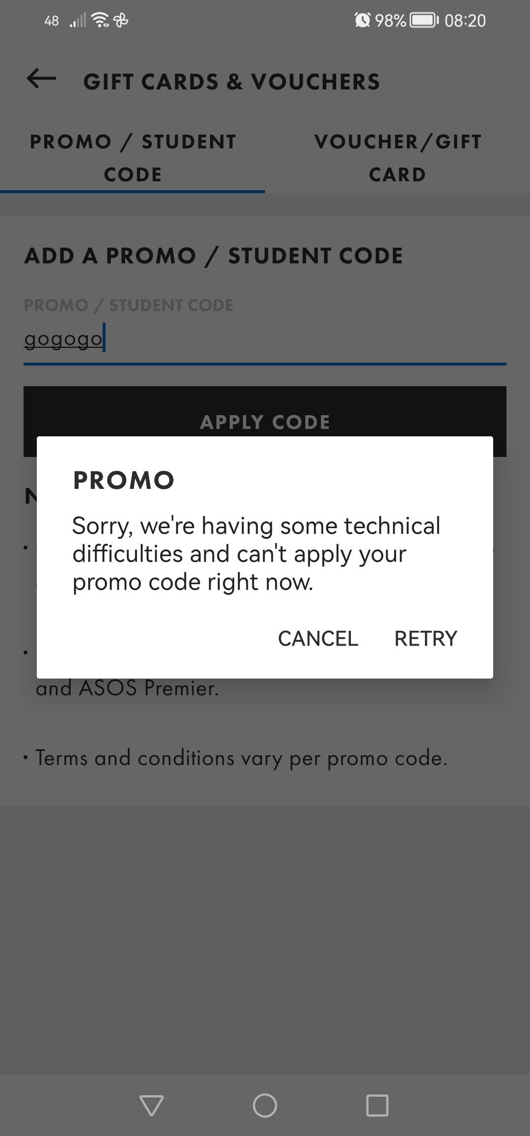 Asos add gift card